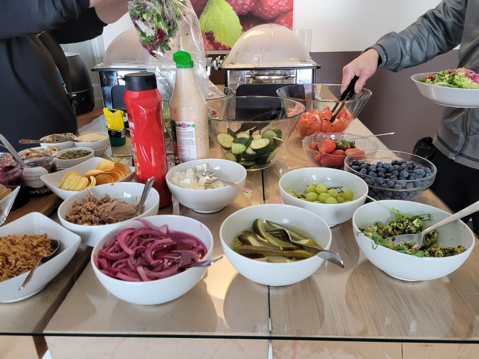 sis. salaattibuffet, ruokajuomat, leipä, kahvi ja jälkiruoka