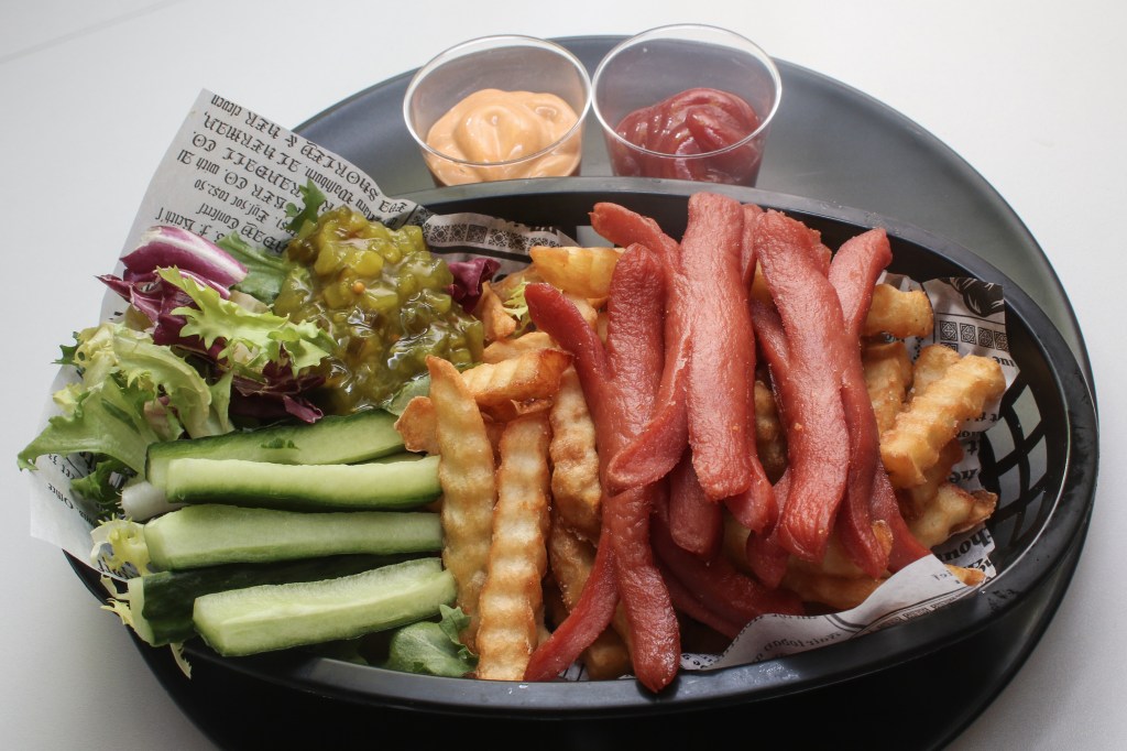 MAUSTEET: kurkkusalaatti, ketsuppi, sinappi, sipuli